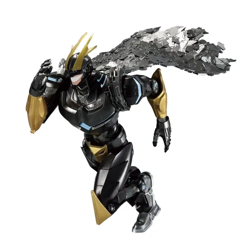 Figura je bogato detaljirana, s naglaskom na oklopni izgled, mišićnu građu i efekt kretanja iza lika. Kombinacija tamnih i zlatnih tonova daje figuri moderan i moćan vizualni identitet, dok kvalitetna završna obrada osigurava atraktivan izgled iz svih kutova.