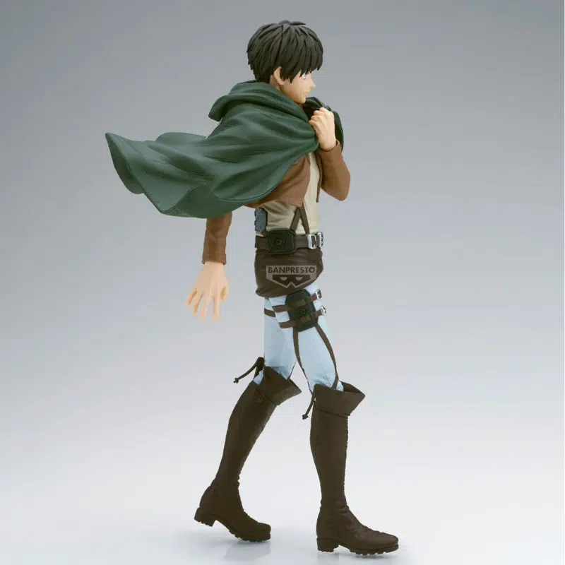 Attack on Titan Eren Yeager Grandista figura 28 cm donosi snažan i detaljan prikaz jednog od najpoznatijih likova iz hit anime serijala Attack on Titan. Eren Yeager prikazan je u prepoznatljivoj odjeći s ogrtačem, spreman za borbu, što savršeno dočarava njegov karakter i odlučnost.