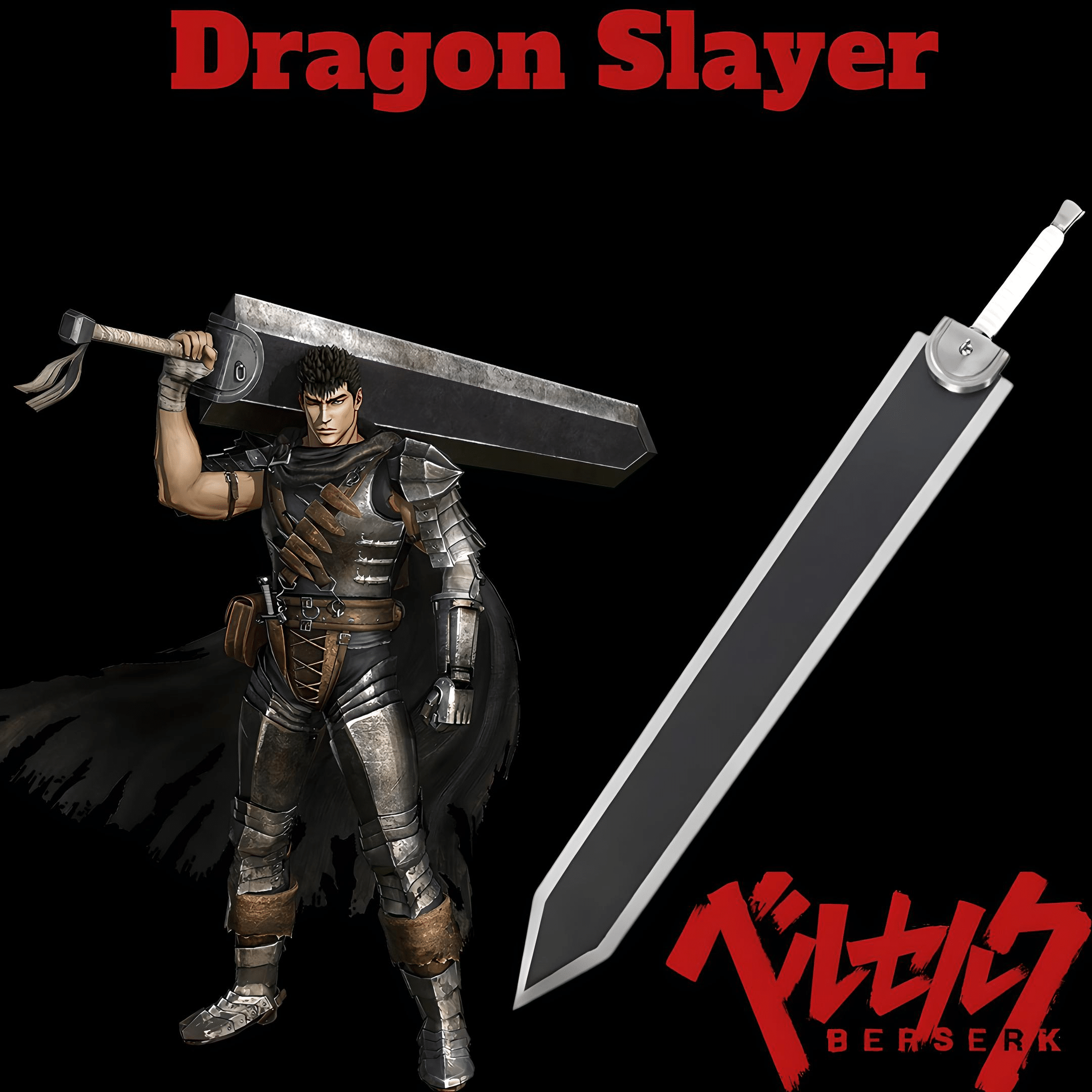 Dragon Slayer mač je izrađen od visokokvalitetnog metala, čime je osigurana njegova dugovječnost i izdržljivost. Sa svojom dužinom od 145 cm, ovaj mač vjerno replicira oružje koje je Guts nosio u seriji Berserk. Oštrica mača je široka, masivna i precizno oblikovana, a ručka ima autentičan dizajn koji odražava Gutsovu čvrstinu i snagu. Svaki detalj na ovom maču pažljivo je izrađen kako bi prenio epski karakter Dragon Slayer-a, omogućujući vam da se osjetite kao pravi ratnik iz Berserk svijeta.