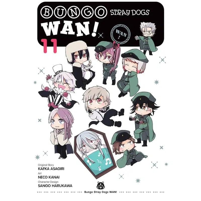 Bungo Stray Dogs WAN!, Vol. 11 jedanaesti je volumen službenog spin-off manga serijala unutar svijeta Bungo Stray Dogs. WAN! serijal poznat je po svom chibi prikazu likova, lakšem tonu i humorističnom pristupu, koji pruža opuštenu alternativu mračnijoj i ozbiljnijoj glavnoj mangi.