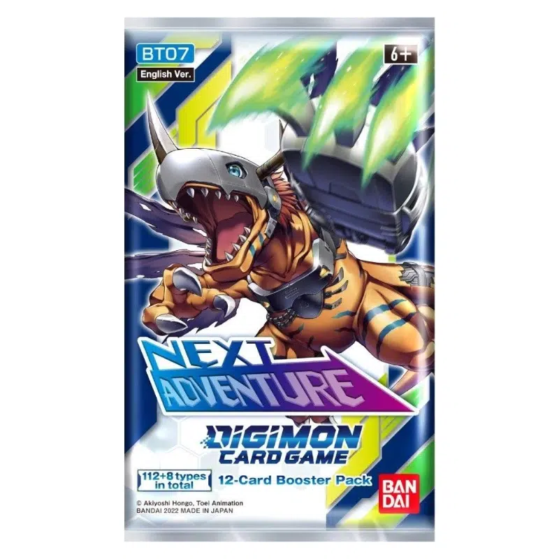 Unesi novu dimenziju u svoju Digimon Card Game kolekciju uz “Next Adventure” booster paketić iz BT-07: Next Adventure seta — englesko izdanje popularnog Digimon TCG booster paketa koji donosi mnoštvo novih Digimona, Tamer kartica i drugih uzbudljivih dodataka inspiriranih Digimon Frontier i Digimon Adventure temama.