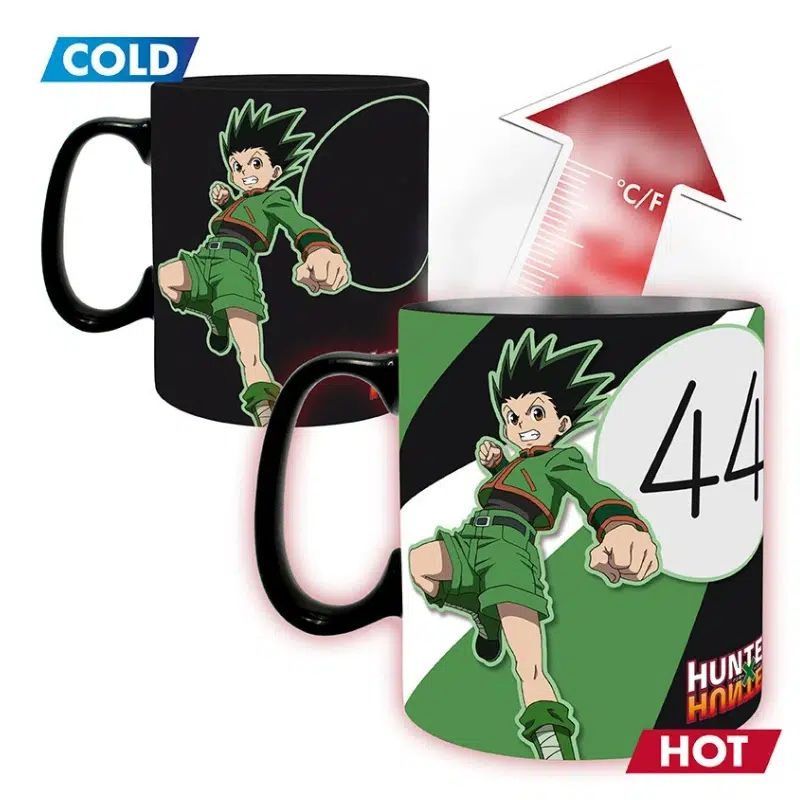 Hunter x Hunter Gon i Hisoka Heat Change šalica 460 ml posebna je keramička šalica s termo-reaktivnim efektom, inspirirana anime serijalom Hunter x Hunter. Dizajn prikazuje Gona Freecssa i Hisoku Morowa, a vizual se vidljivo mijenja kada se u šalicu ulije topli napitak, stvarajući snažan i efektan dojam.