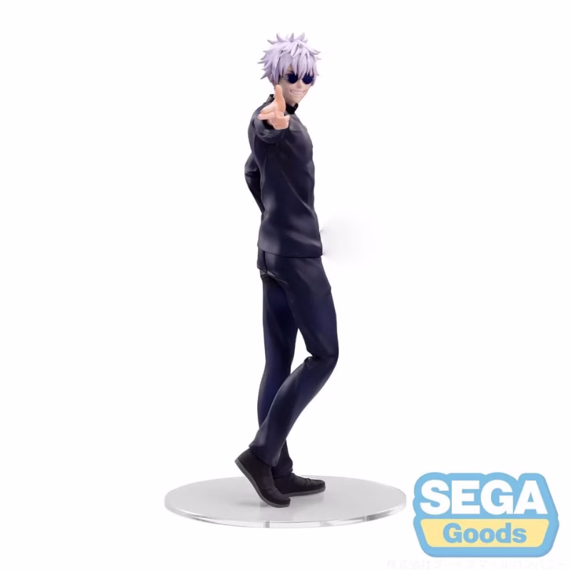 Gojo je ovdje prikazan u elegantnom, borbenom stavu s pažljivo oblikovanim detaljima na odjeći i kosi. Njegova poza odiše kontroliranom moći i smirenošću, što odražava njegov status najsnažnijeg prokletog čarobnjaka u serijalu. Svaki element – od teksture uniforme do izražajnog lica – izrađen je s iznimnom preciznošću.