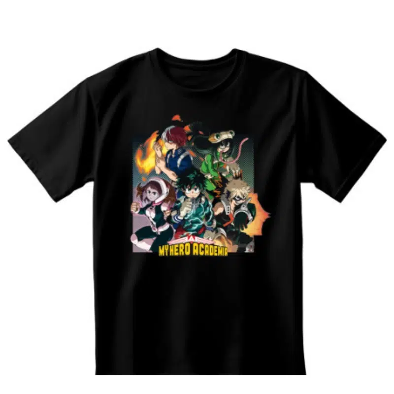 Crna majica kratkih rukava s My Hero Academia motivom. Udobna i moderna za svakodnevno nošenje.