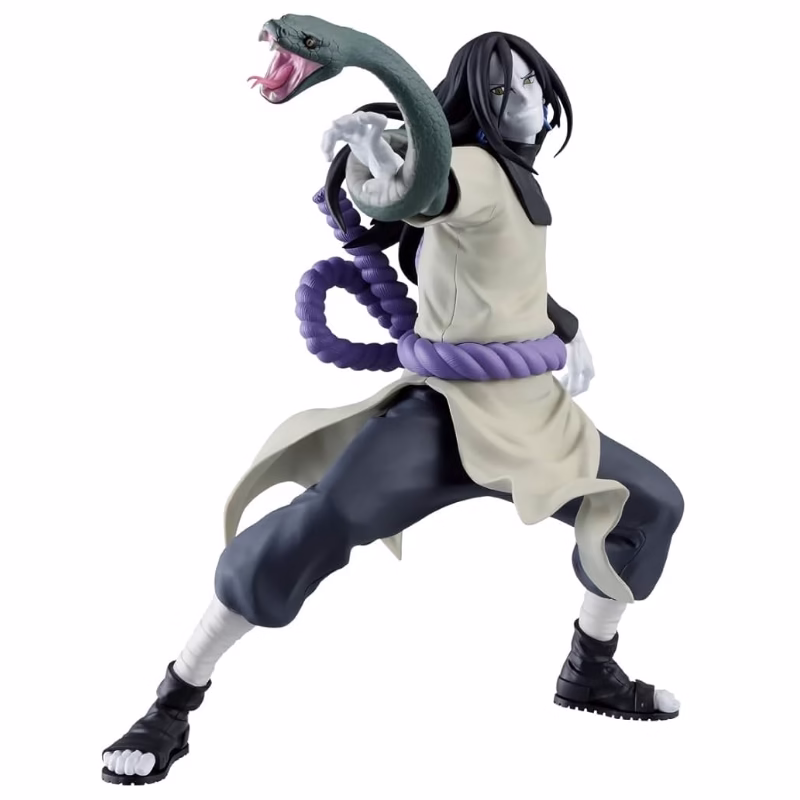 Dodaj tamniju stranu Naruto Shippuden svijetu svojoj kolekciji uz ovu detaljno izrađenu figuru Orochimaru, jednog od najpoznatijih antagonista serijala. S visinom od 15 cm, ova figura savršeno prikazuje zlokobnu prisutnost i prepoznatljiv izgled legendarnog Sanina. Od blijede puti i prodornih očiju, do zmijolikih detalja koji ga čine jednim od najupečatljivijih likova u seriji.