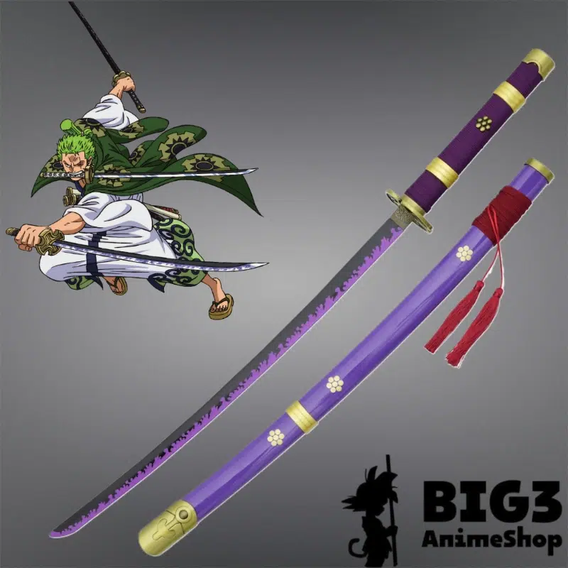 Ova impresivna metalna katana dugačka 106 cm vjerno je replika Enma mača kojeg nosi Roronoa Zoro iz popularne anime serije One Piece. Enma je poznata po svojoj sposobnosti da izvuče korisnikov Haki, stvarajući crni oštrica tijekom vremena. Ova verzija, označena kao “Haki ver.”, dodatno ističe tu značajku, pružajući autentičan izgled i osjećaj.
